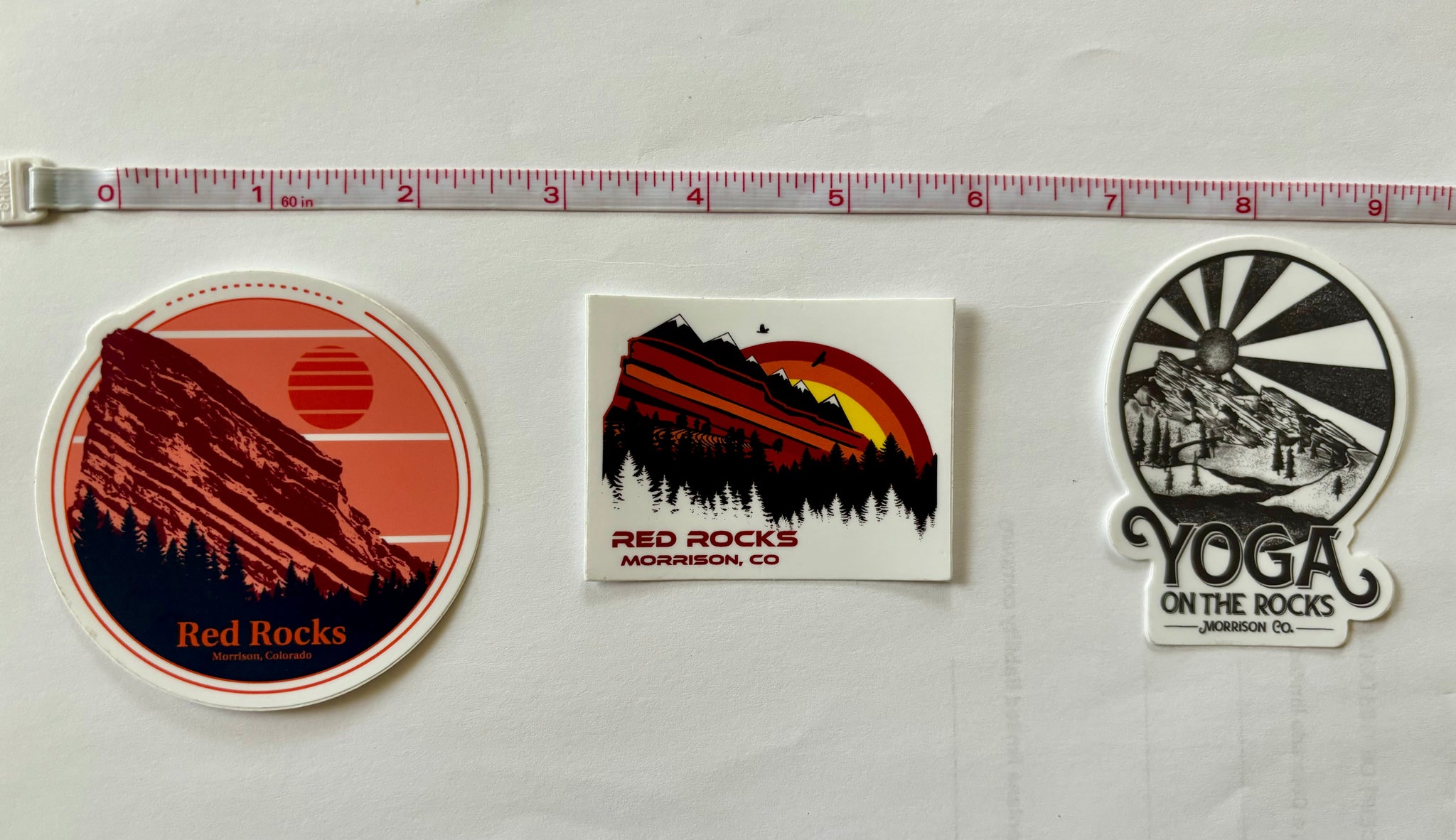 Rainbow Red Rocks Sticker printed on our new weatherproof vinyl!