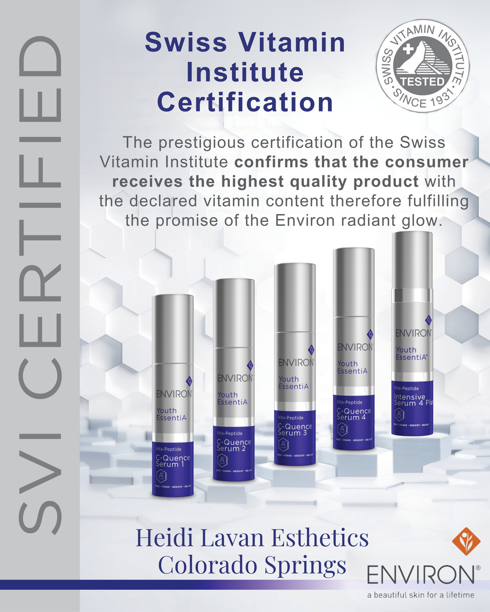 This serum is the third level in Environ's premium Vitamin STEP-UP SYSTEM™. It contains a high concentration of vitamin A, C and E that help to support and maintain a radiantly youthful appearance. The combination of highly effective ingredients in this serum work together to help combat the visible signs of aging to create the appearance of an even, smoother and healthier looking skin.